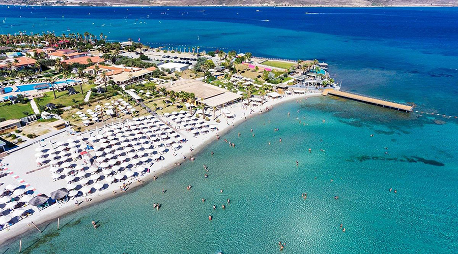 Located in the windless and uniquely beautiful Ayayorgi Bay of Çeşme, Sole Mare Beach is an indispensable address where sea, sun and entertainment come together. With its shallow turquoise sea, Sole Mare Çeşme appeals to both adults and families with children, and is the first choice of families with children, especially with its shallow sea.